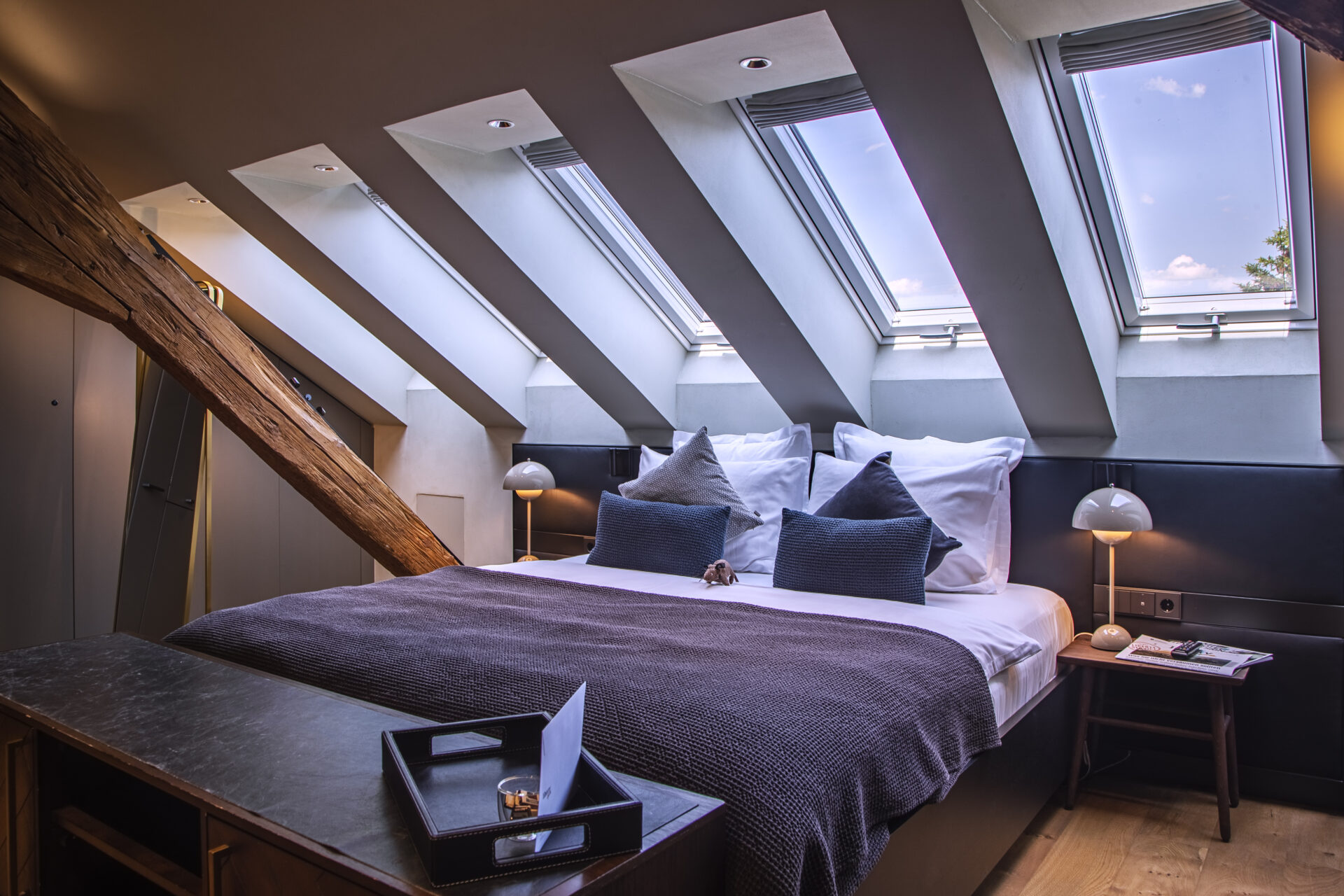 Das Highlight des Executive Rooms mit 25-30m² ist die freistehende Badewanne, die den Gästen einen neuen Blickwinkel auf die beeindruckenden Gewölbedecken, den dicken Sandstein und das freiliegende Gemäuer ermöglicht. Dazu kommen noch sorgfältig ausgewählte, handgemachte Möbelstücke sowie Kunstwerke.