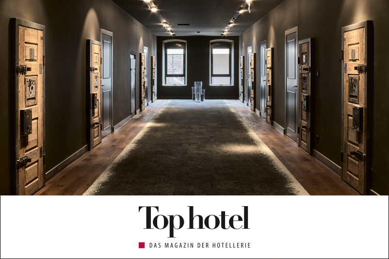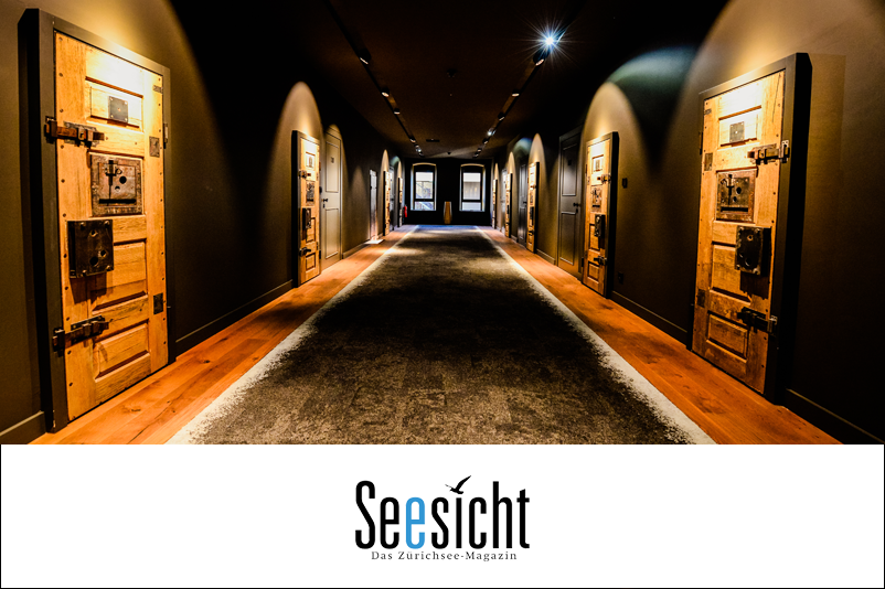 Der erste Eindruck ist beklemmend, trotz der Warnung des Hoteldirektors Marc Aeberhard wenige Sekunden zuvor: Wenn man vom Treppenhaus in den Flur des ersten Obergeschosses tritt, sieht man vor sich einen breiten, kurzen Gang, durch das Gegenlicht von den Fenstern und die grauen Wände in ein merkwürdiges Licht getaucht....